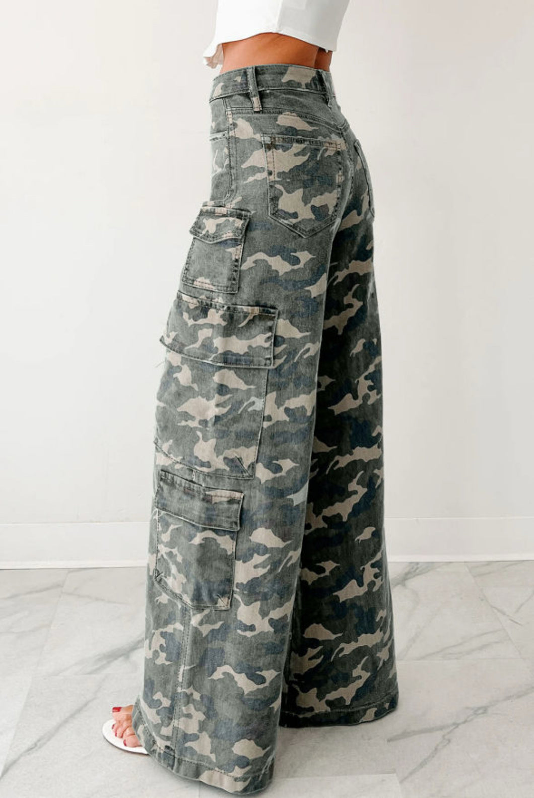 These camo cargo pants bring effortless edge to any outfit. Designed with a flattering high-rise waist, wide-leg silhouette, and functional cargo pockets, they’re equal parts cool and comfortable. Pair with a fitted top, graphic tee, or cozy sweater for an on-trend look.