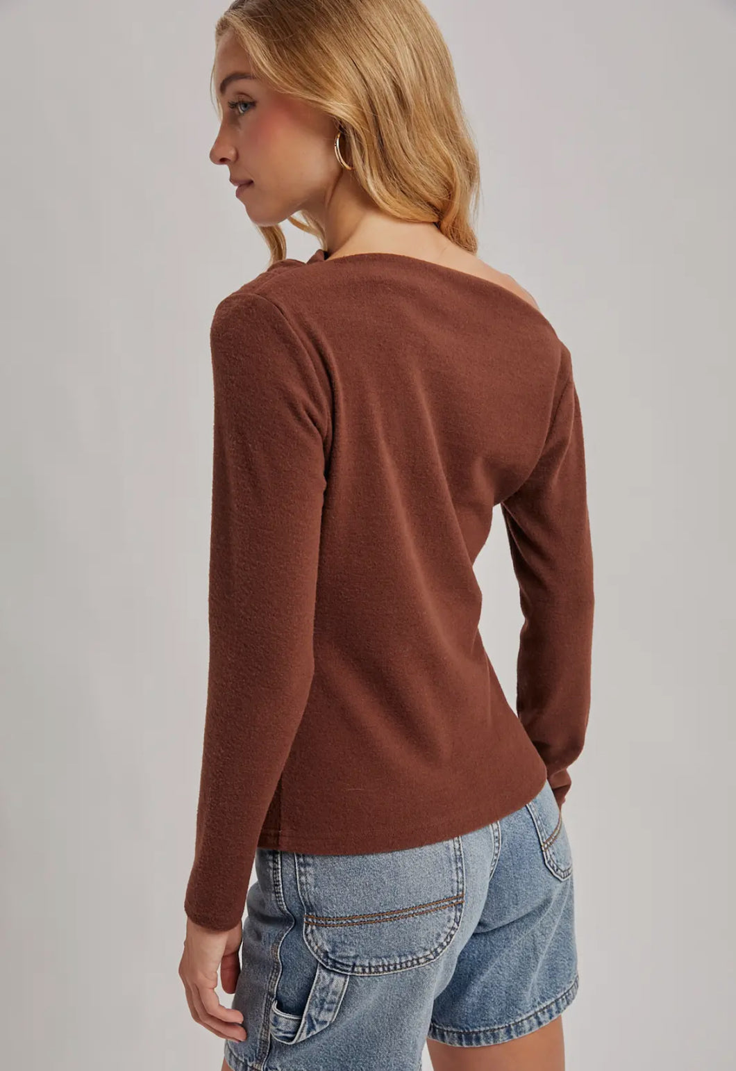 The Afterglow Off-Shoulder Top is that effortlessly elevated piece you throw on when you want to look dressed up without even trying. The soft, stretchy knit hugs in all the right places, while the asymmetric off-shoulder neckline gives it that swoon-worthy, polished feel. Long sleeves and subtle ruching create a flattering shape that moves with you. Pair it with denim, leather, or wide-leg trousers — it’s an instant yes for date nights, girls’ nights, and every “I need something cute” moment.