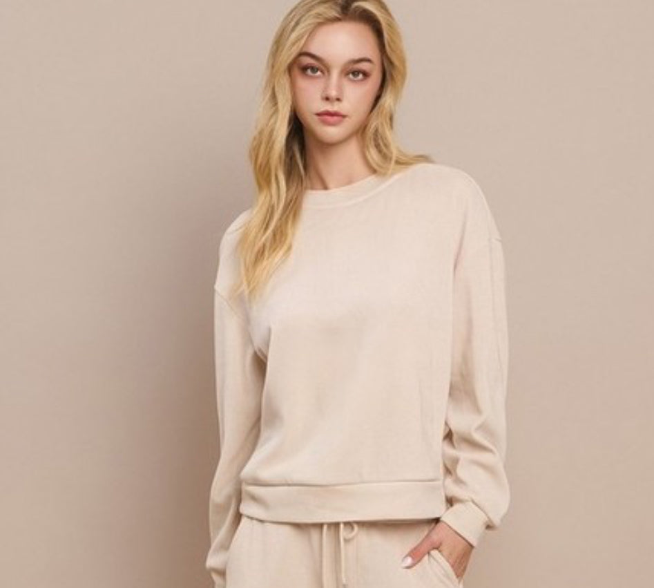 A fresh twist on a classic favorite — this corduroy sweatshirt brings texture and comfort together in one effortless piece. Designed with a relaxed fit, ribbed trim, and that ultra-soft corded feel we all love. Perfect for laid-back days, cozy errands, or styled up with denim for a chic casual look. Available in ivory and khaki