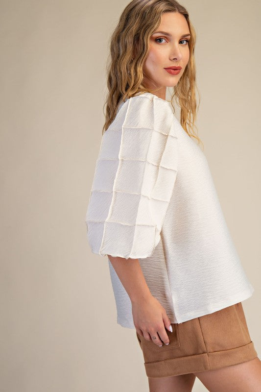Elevate your everyday style with the Textured Elegance Puff Sleeve Top. Featuring a relaxed fit and statement puff sleeves with a unique textured grid design, this top blends modern details with timeless charm. Available in cream for a soft, chic look and burgundy for a bold pop of color, it’s perfect for pairing with denim, tailored pants, or skirts for a polished yet effortless vibe.