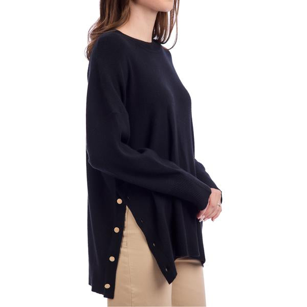 The Noralee Button Sweater is a stylish and versatile addition to any wardrobe. Crafted from a high-quality poly blend knit, this sweater offers a luxurious feel and a comfortable fit. The design features a unique side placket adorned with elegant brass buttons, adding a touch of sophistication to the overall look. The ribbed neckline, sleeve openings, and hem provide a classic finish, ensuring the sweater maintains its shape and style. With a one-size-fits-most design, it offers a flattering fit for various body types. Measuring approximately 27 inches from shoulder to hem, it provides ample coverage and can be easily paired with your favorite jeans or skirts for a chic ensemble.