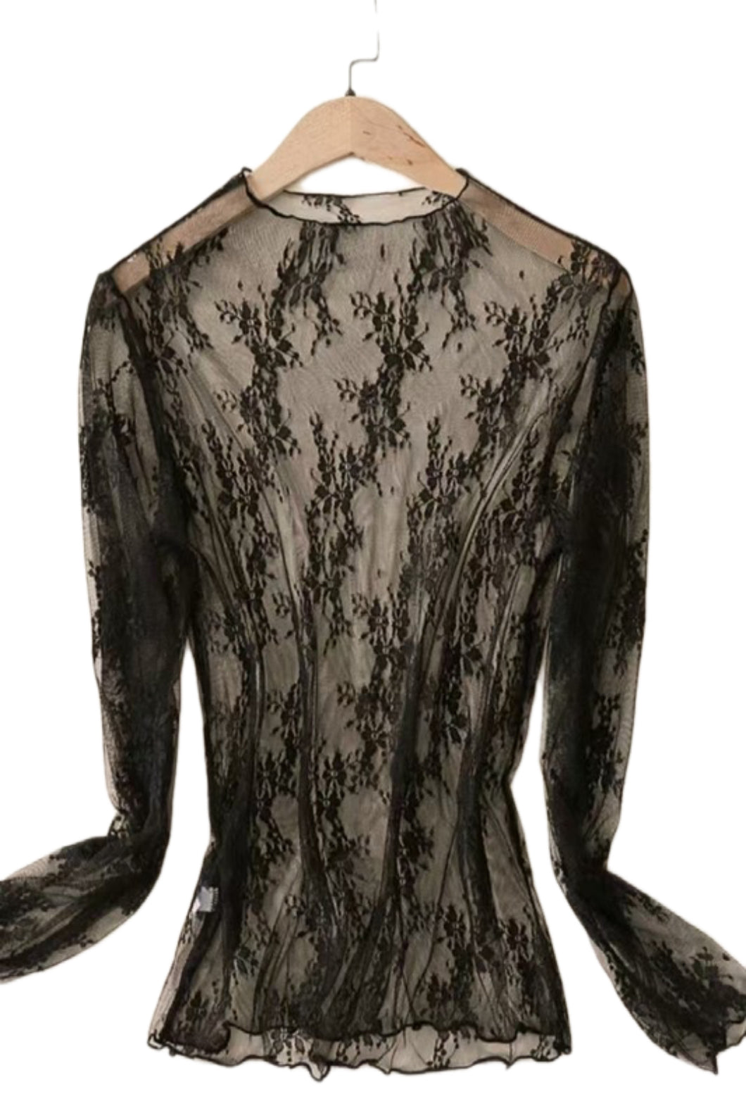 Delicate yet daring, the Whisper Lace Layering Tee brings just the right touch of edge and romance. Crafted from sheer floral lace with subtle stretch, this fitted top layers beautifully under blazers, slip dresses, or chunky knits. A statement piece that turns any outfit into an after-dark moment.